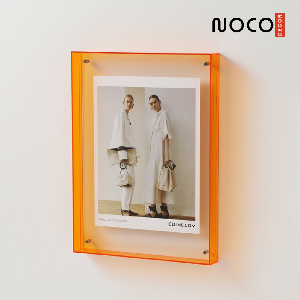 Sản phẩm trong hình là khung tranh mica nổi bật viền cam trong suốt, mang phong cách hiện đại và tối giản, thường dùng để treo poster, hình ảnh nghệ thuật hoặc trang trí không gian theo phong cách Hàn/Nhật đương đại. ✅ Chi tiết sản phẩm: Tên sản phẩm: Khung tranh mica trong suốt viền cam Chất liệu: Mica acrylic cao cấp Mặt trước & sau: Mica trong suốt ép 2 lớp Viền ngoài: Mica màu cam nổi bật (có thể chọn các màu khác như vàng, xanh...) Cách lắp đặt: Treo tường bằng ốc inox cố định 4 góc Kiểu dáng: Dạng hộp nổi 3D – hiện đại, sang trọng 📐 Kích thước sản phẩm (tham khảo): Sản phẩm có thể có nhiều size, phổ biến gồm: Kích thước ảnh (bên trong) Kích thước khung tổng thể A4 (21x29.7 cm) ~24 x 32 x 2.5 cm A3 (29.7x42 cm) ~33 x 45 x 2.5 cm Khung có độ dày từ 2 – 3 cm tạo hiệu ứng nổi đẹp mắt. 📦 Kích thước đóng thùng (A4): Thùng giấy carton cứng bảo vệ Kích thước thùng: ~30 x 35 x 6 cm Trọng lượng: ~800g – 1.2kg tùy kích cỡ 💡 Ứng dụng: Trang trí studio, quán cafe, gallery, shop thời trang Treo tranh ảnh cá nhân hoặc hình nghệ thuật, poster